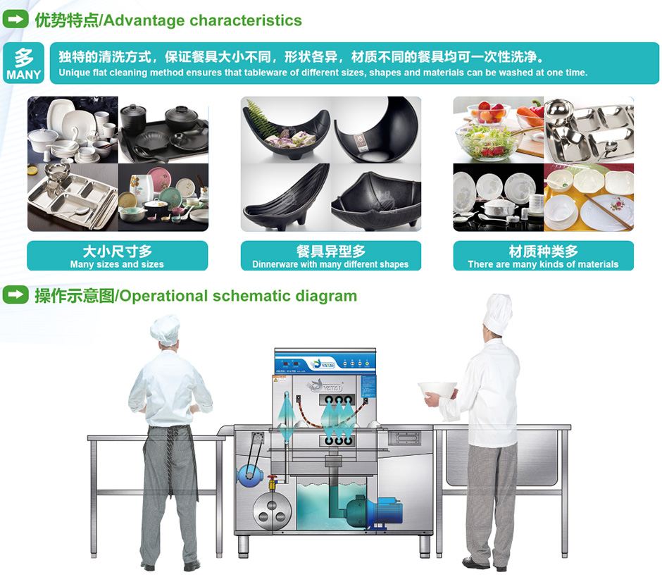 亞鈦洗碗機本機全程引進德國技術。主要部件均采用進口品牌元器件。強水壓,大流量,確保了最佳的洗滌效果,自動控制部分由微電腦控制系統和專業設計制作的全新操作面板實現最舒適的操作體驗,可以滿足各類符合規格要求的盤碟碗以及玻璃杯的高標準洗滌要求:經國家衛生部門和質量安全機構檢測,清洗出餐具衛生效果達到國家衛生標準和國家質量安全標準。