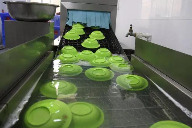 這樣的學校食堂洗碗機,在第一飯堂負責該校區餐具三個時段的集中洗消與配送,整個流程是這個樣子的: